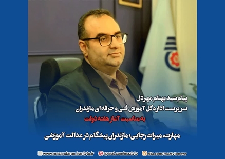 سیدبهنام مهردل سرپرست اداره کل آموزش فنی و حرفه ای مازندران، در پیامی به مناسبت گرامیداشت آغاز هفته دولت را تبریک گفت.